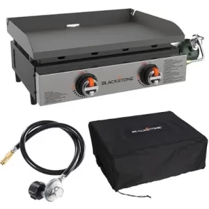 I picked up a bundle with the griddle, 3 foot adaptor propane hose, plus soft cover from Camping World which had a sale at the time that beat Amazon, Walmart at the time.
